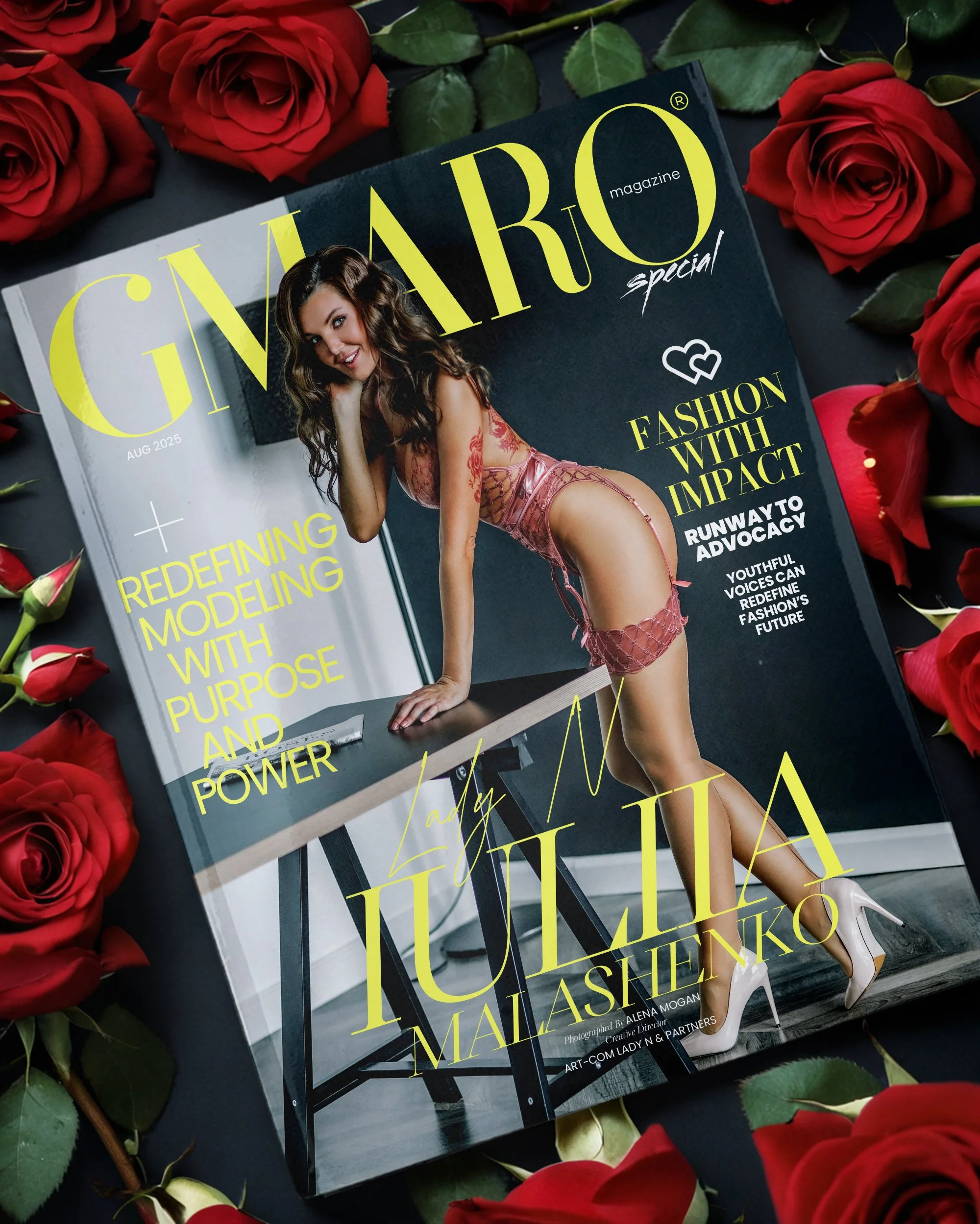 Presenting the GMARO Magazine August 2025 Issue #16, featuring the dynamic Iuliia Malashenko aka Lady N (@sweetheart.lady.n), captured by photographer Alena Mogan (@alenamogan) under the creative direction of Art-com Lady N & Partners (@artcom_partners). A force in both fashion and business, Lady N’s journey spans global PR success, Times Square billboards, and the prestigious Top Best Persona Award. In this cover story, she embraces a daring minimalist look — lingerie from Honey Birdette paired with pointed-toe heels — proving that quiet luxury, confidence, and cultural awareness are the true hallmarks of modern influence.