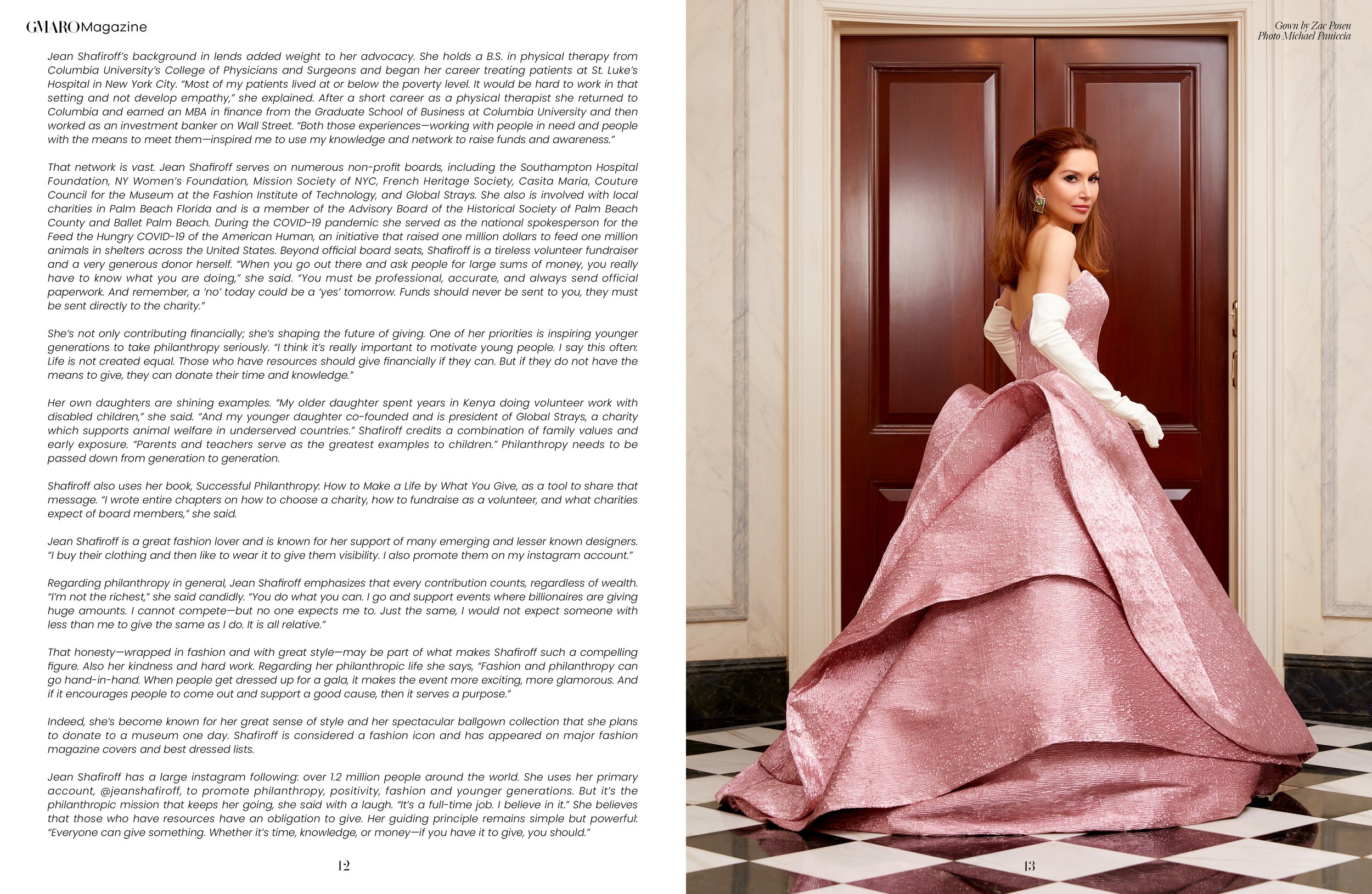 GMARO Magazine is honored to present philanthropist, humanitarian, television host, author, and global style icon Jean Shafiroff on our cover—an extraordinary woman widely known as “The First Lady of Philanthropy.”